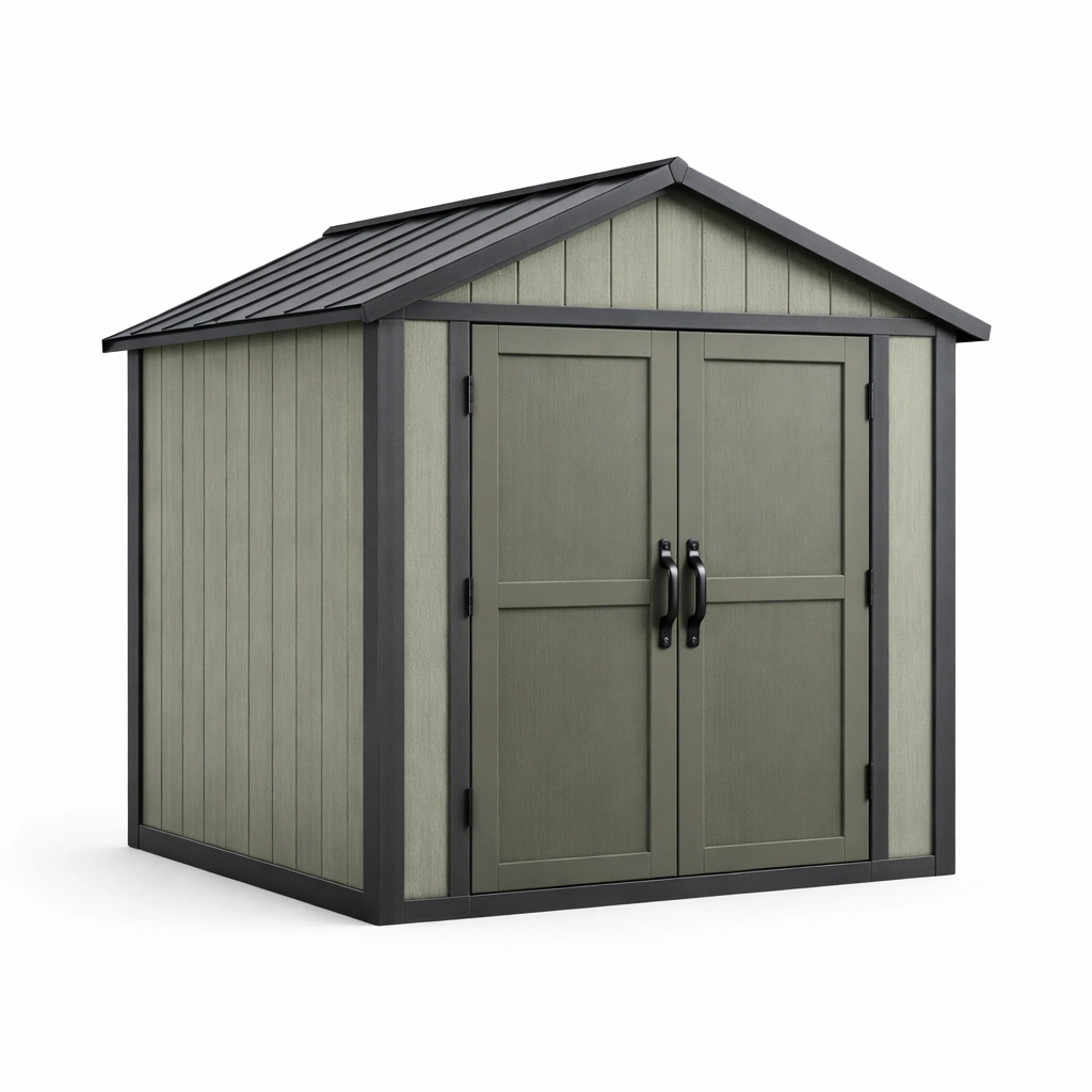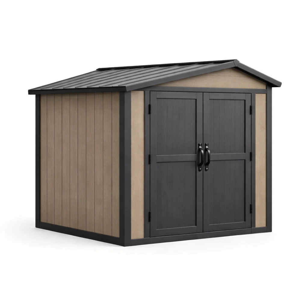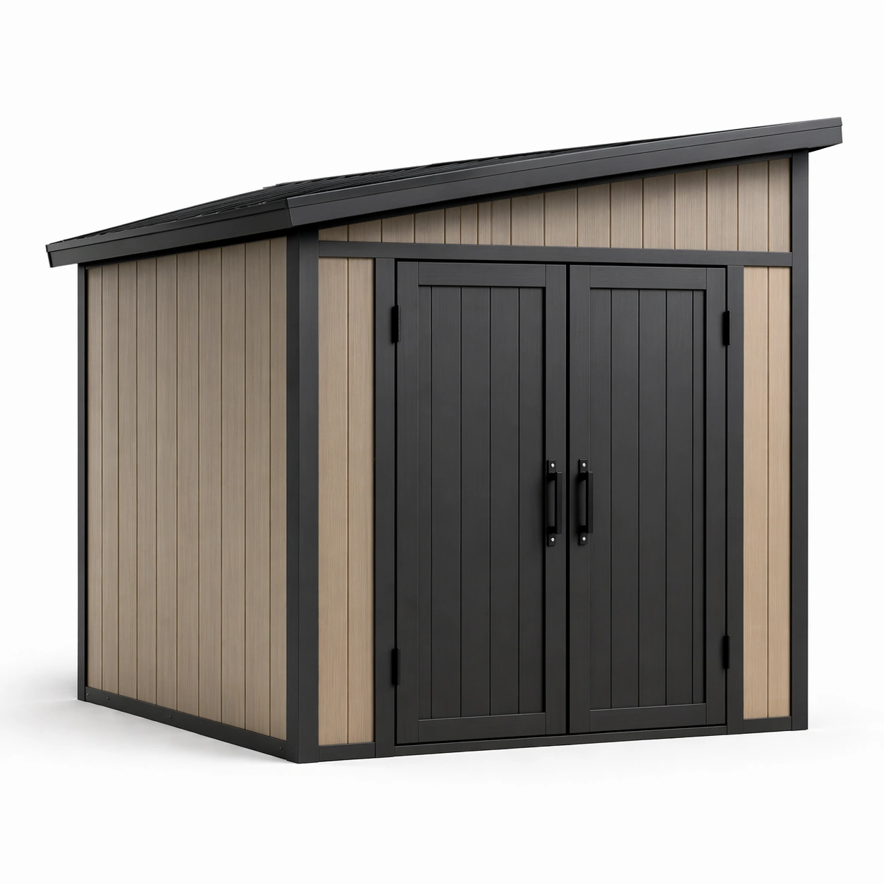 Gartenhaus Kunststoff Holzoptik Schwarz Grau 210x160x180 cm
