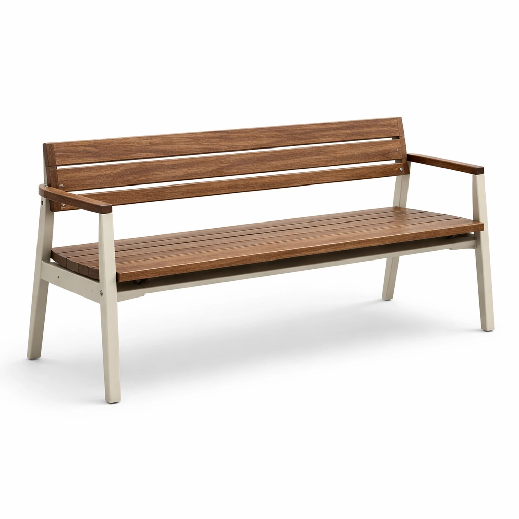 Material: Sitz- und Rückenfläche aus Akazienholz, Gestell aus pulverbeschichtetem Stahl