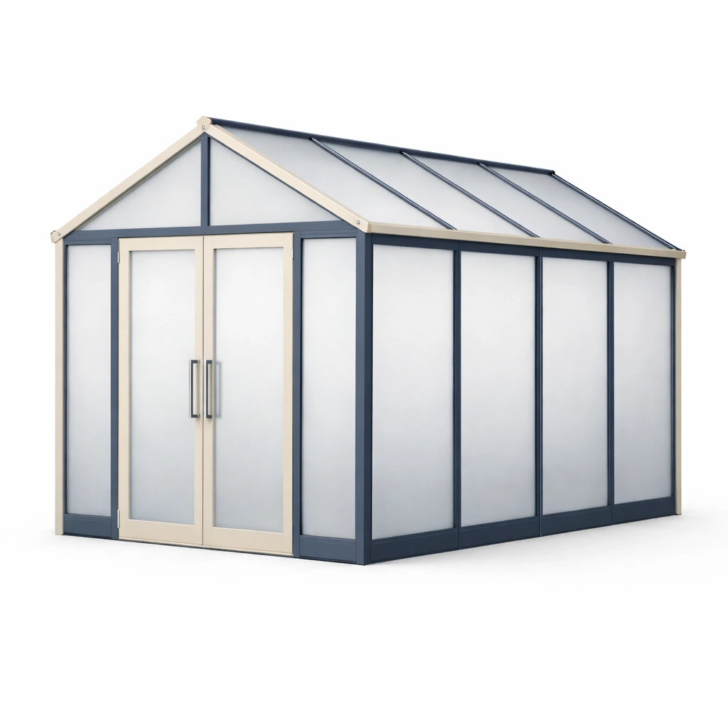 Dieses Gewächshaus besteht aus einem stabilen Aluminiumrahmen und 4 mm dicken, witterungsbeständigen Polycarbonat-Paneelen. Die Abmessungen betragen 250 cm in der Länge, 200 cm in der Breite und 210 cm in der Höhe.